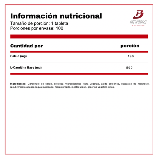 L-Carnitine 500 mg Carnitina 100 tabletas