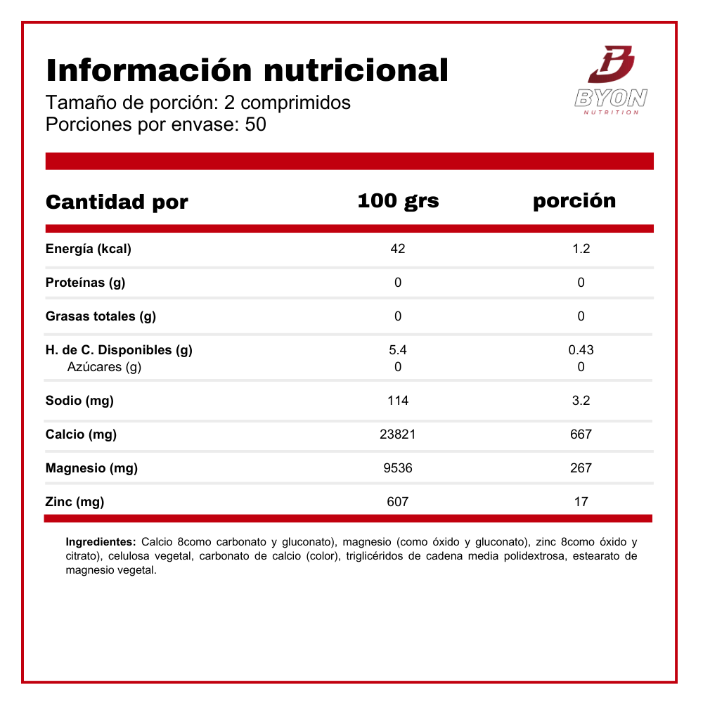 Apoya el cuidado de huesos y dientes (calcio), contribuye a la función muscular y nerviosa (magnesio) y participa en defensas y piel (zinc). No reemplaza una alimentación equilibrada.