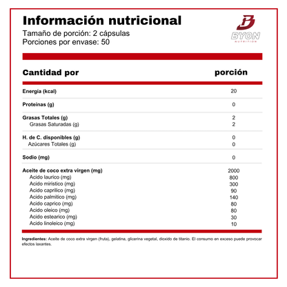 Aceite de Coco Extra Virgen 2000 mg – 100 Softgels
