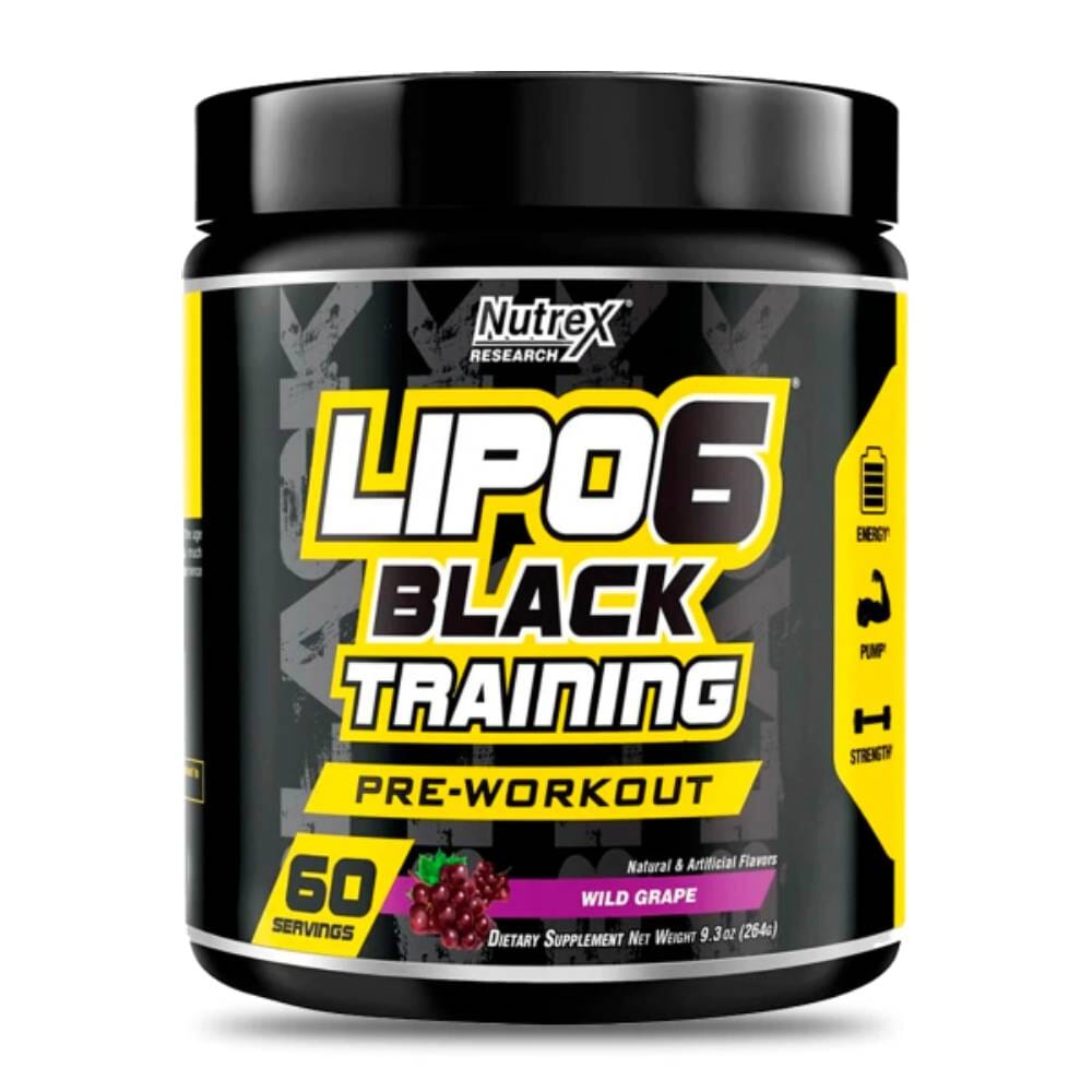Lipo 6 Black Training de Nutrex es un pre-entreno termogénico.Esta fórmula combina ingredientes estimulantes con compuestos que potencian el gasto energetico (kcal), la resistencia y la concentración.