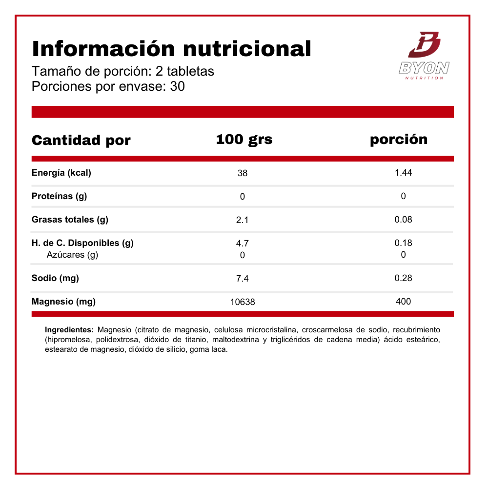 - Magnesio (como citrato de magnesio) 400 mg