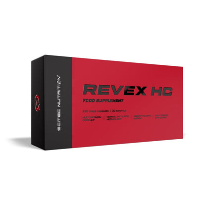 Revex HC de Scitec Nutrition es una fórmula termogenica avanzada diseñada para optimizar la oxidación de grasa, mejorar el metabolismo y potenciar el rendimiento físico. Su combinación de ingredientes activos favorece la energía sostenida y el control del apetito sin el uso de estimulantes agresivos.