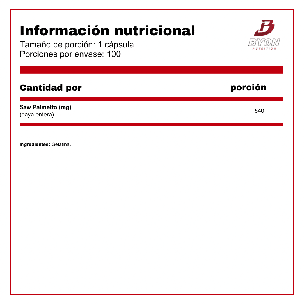 ✔ 540 mg de extracto de palma enana americana por cápsula