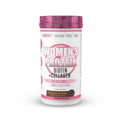 Women’s Protein de Landerfit combina proteína de suero con biotina, colágeno y vitaminas esenciales para apoyar el desarrollo muscular, la salud del cabello y la piel, y el bienestar integral femenino. Es liviana, rica y perfecta para acompañarte en tus entrenamientos y en tu día a día.